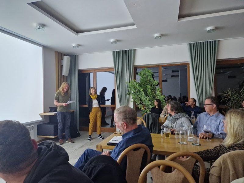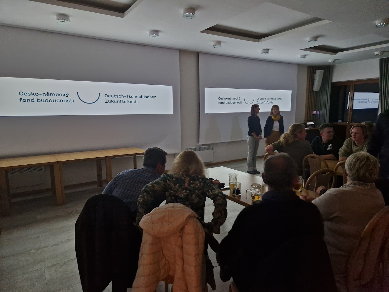 Náš společný pobyt započal v pátek po poledni ubytováním v klidném prostředí resortu Olšina, který se rozkládá na břehu stejnojmenného rybníka. Kolem rybníka vede asi 8 km dlouhá naučná stezka, jejíž zdolání se stalo naší první společnou aktivitou. Páteční večer jsme pak strávili působivými přednáškami Dominika Lajkepa a Christiana Reitera. Dominik i Christian nás nechali nahlédnout do historie jejich rodin se zaměřením na osudy příbuzných, kteří zažili nucený odsun ze Sudet.