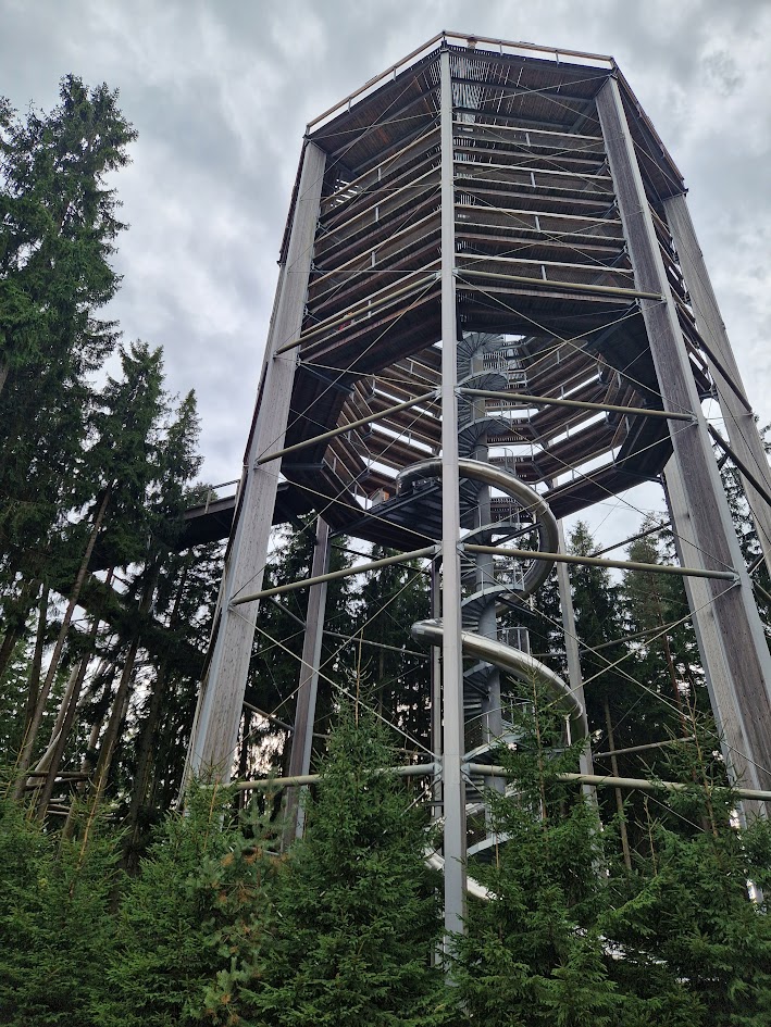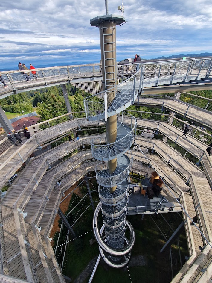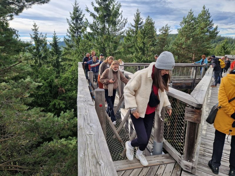 Sobotní program jsme zasvětili poznávání spojenému s pohybem na čerstvém vzduchu. Dopoledne nám zpestřila komentovaná prohlídka Cisterciáckého kláštera ve Vyšším Brodě, při níž mne zaujaly výjimečné znalosti mladého průvodce spojené s jeho vybroušenými vyjadřovacími schopnostmi. Po společném obědě s výhledem na Lipno jsme se vydali na pěší výstup od břehu lipenské přehrady až na Stezku v korunách stromů. Znamenalo to pro nás zdolání 200 m výškového rozdílu, ale odměnou byl nádherný výhled z vrcholu této turistické atrakce. Sobotní večer byl věnován volné zábavě, během níž jsme s našimi německými přáteli pomocí vhodných nápojů odstranili poslední komunikační bariéry 🙂 a opravdu hodně jsme se nasmáli.