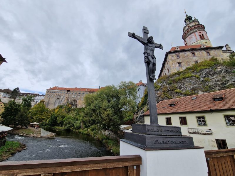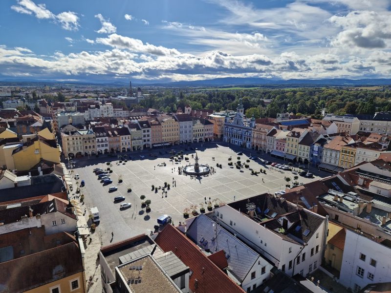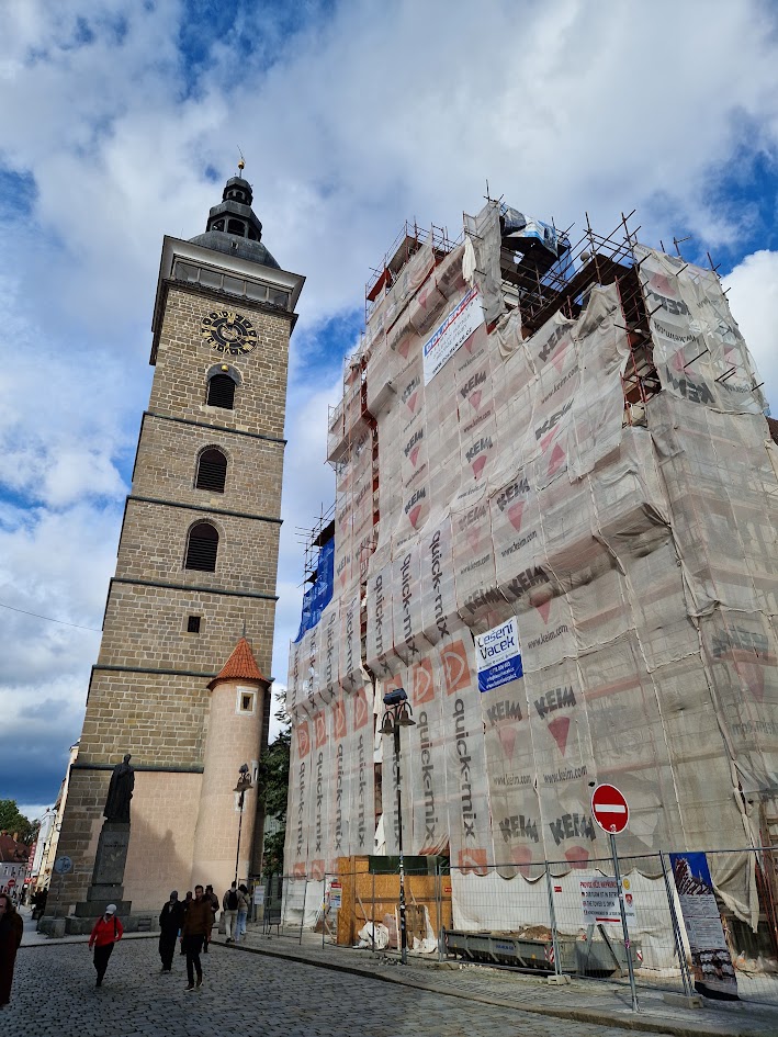 Po nedělní snídani jsme vyrazili do Českého Krumlova do kostela sv. Víta na nedělní mši. Náhodou jsme si vybrali bohoslužbu, při níž byla místním biskupem udělována Svátost biřmování. To znamenalo na jednu stranu mimořádný zážitek, pro mne především z nádherného zpěvu chrámového sboru, na druhou stranu to znamenalo časové zpoždění a určitou nervozitu, neboť jsme po mši již měli objednanou komentovanou prohlídku historického centra Krumlova. Paní průvodkyně na nás naštěstí ochotně počkala a poskytla nám poutavý výklad spojený s procházkou po městě. Následoval přejezd do Českých Budějovic, kde nás nejprve čekal oběd a po něm krátká procházka po centru Budějovic spojená s výstupem na Černou věž. To byl s plným žaludkem docela výkon, ale výhled z ochozu věže za to stál. Pro mne, jako emeritního bítešského zvoníka, byl zajímavý i pohled na zvony ve věži, mezi nimiž je i třetí největší zvon v Česku.